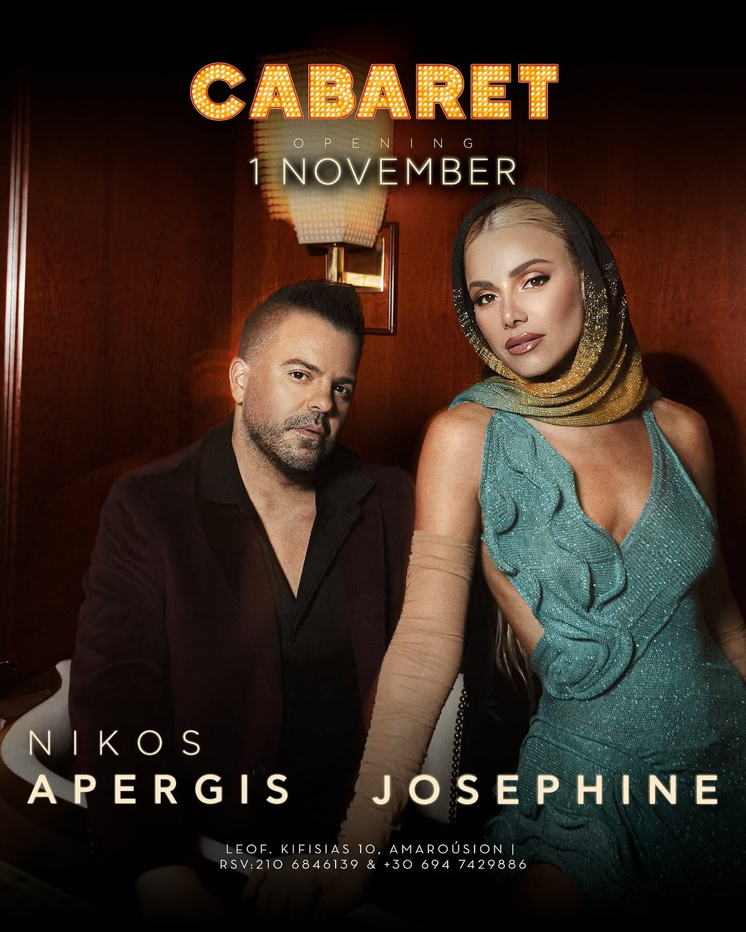 Ο Νίκος Απέργης και η Josephine, δύο από τους πιο επιτυχημένους και αγαπητούς καλλιτέχνες, έρχονται στο ανανεωμένο «Cabaret» και χαρίζουν ένα συναρπαστικό show κάθε Σάββατο (23:00) και Κυριακή (21:00).
