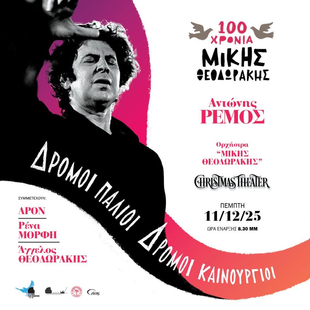 Η συναυλία υπό τον τίτλο «Δρόμοι Παλιοί, Δρόμοι Καινούργιοι» θα διεξαχθεί την Πέμπτη 11 Δεκεμβρίου, στις 8:30 το βράδυ, στο Christmas Theater και θα αποτελέσει μια μυσταγωγική βραδιά – φόρο τιμής στον Έλληνα συνθέτη.