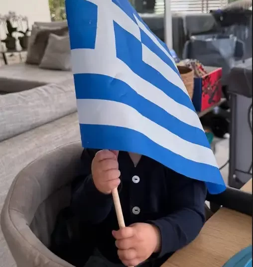 Η σύζυγος του Κωνσταντίνου Αργυρού δημοσίευσε ένα στιγμιότυπο με τον γιο της να κρατά την ελληνική σημαία καλύπτοντας το προσωπάκι του. Σε λίγες εβδομάδες ο μικρός Βασίλης θα γιορτάσει τα πρώτα του γενέθλια με ένα μεγάλο πάρτι που διοργανώνουν οι γονείς του.