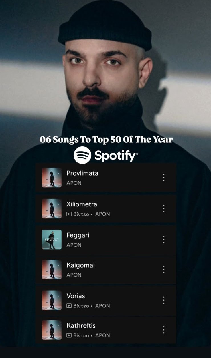Ο Apon συνεχίζει τη σαρωτική επιτυχία του κατακτώντας το ετήσιο Top50 του Spotify με 6 solo τραγούδια του.