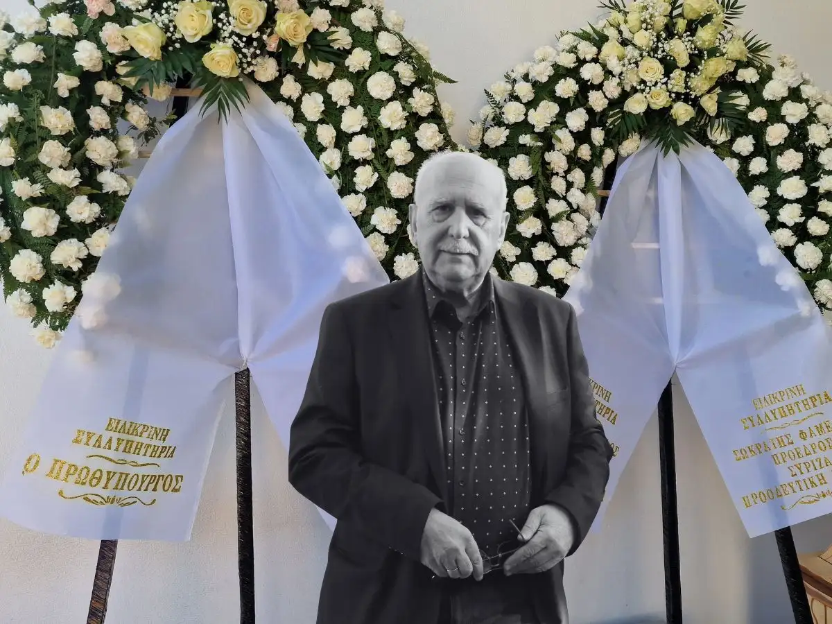 Συγγενείς, φίλοι και παλιοί συνεργάτες αποχαιρετούν για τελευταία φορά τον Γιώργο Παπαδάκη στο Αποτεφρωτήριο Ριτσώνας.