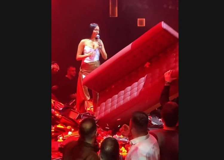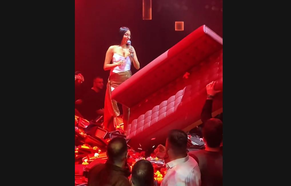 Η ίδια αντιμετώπισε την κατάσταση με χιούμορ λέγοντας χαρακτηριστικά στο μικρόφωνο: «Μετακομίσεις κάνουμε».