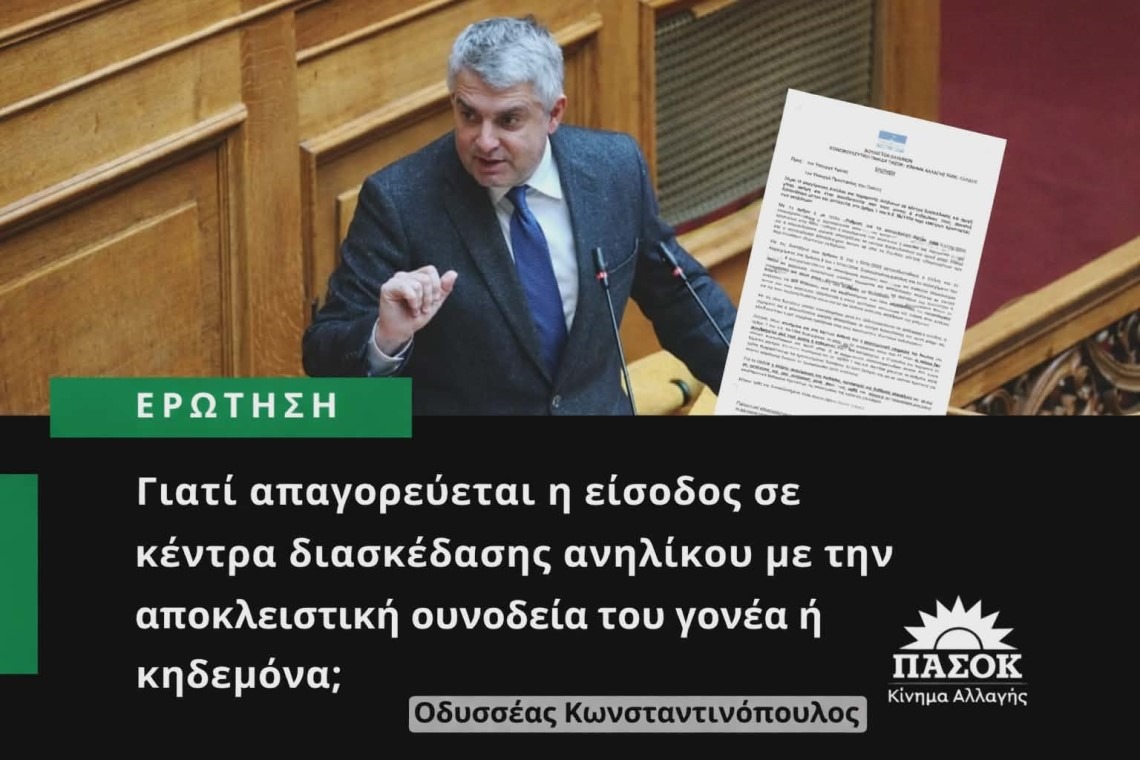 Πολιτική παρέμβαση για το θέμα της απαγόρευσης εισόδου ανηλίκων σε κέντρα διασκέδασης και αμιγή μπαρ πραγματοποίησε ο βουλευτής Οδυσσέας Κωνσταντινόπουλος, εκφράζοντας σοβαρό προβληματισμό για τη νέα ρύθμιση που προβλέπει πλήρη απαγόρευση, ακόμη και με συνοδεία γονέα.